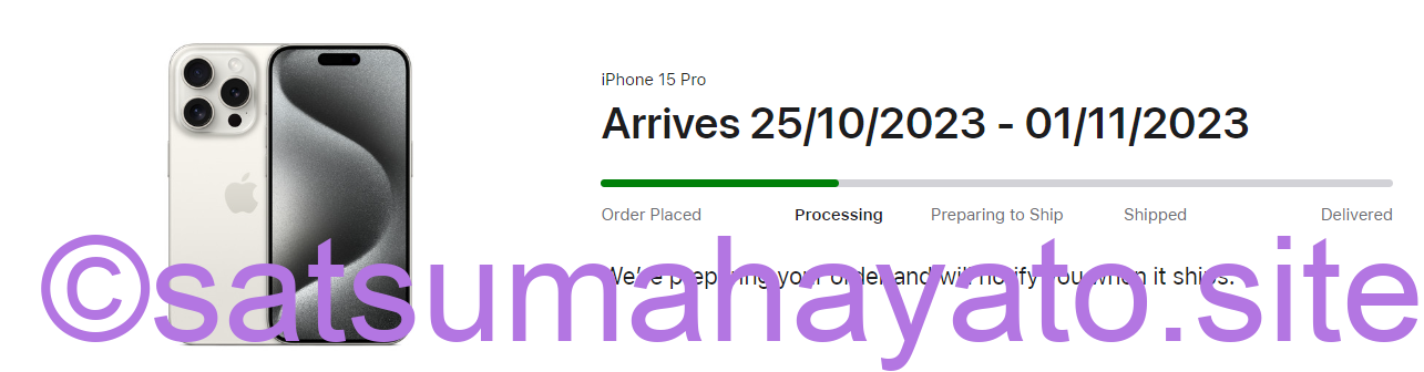 10月25日~11月1日が到着予定となっていた僕のiPhone15proは、11月6日到着予定になったという連絡でした。