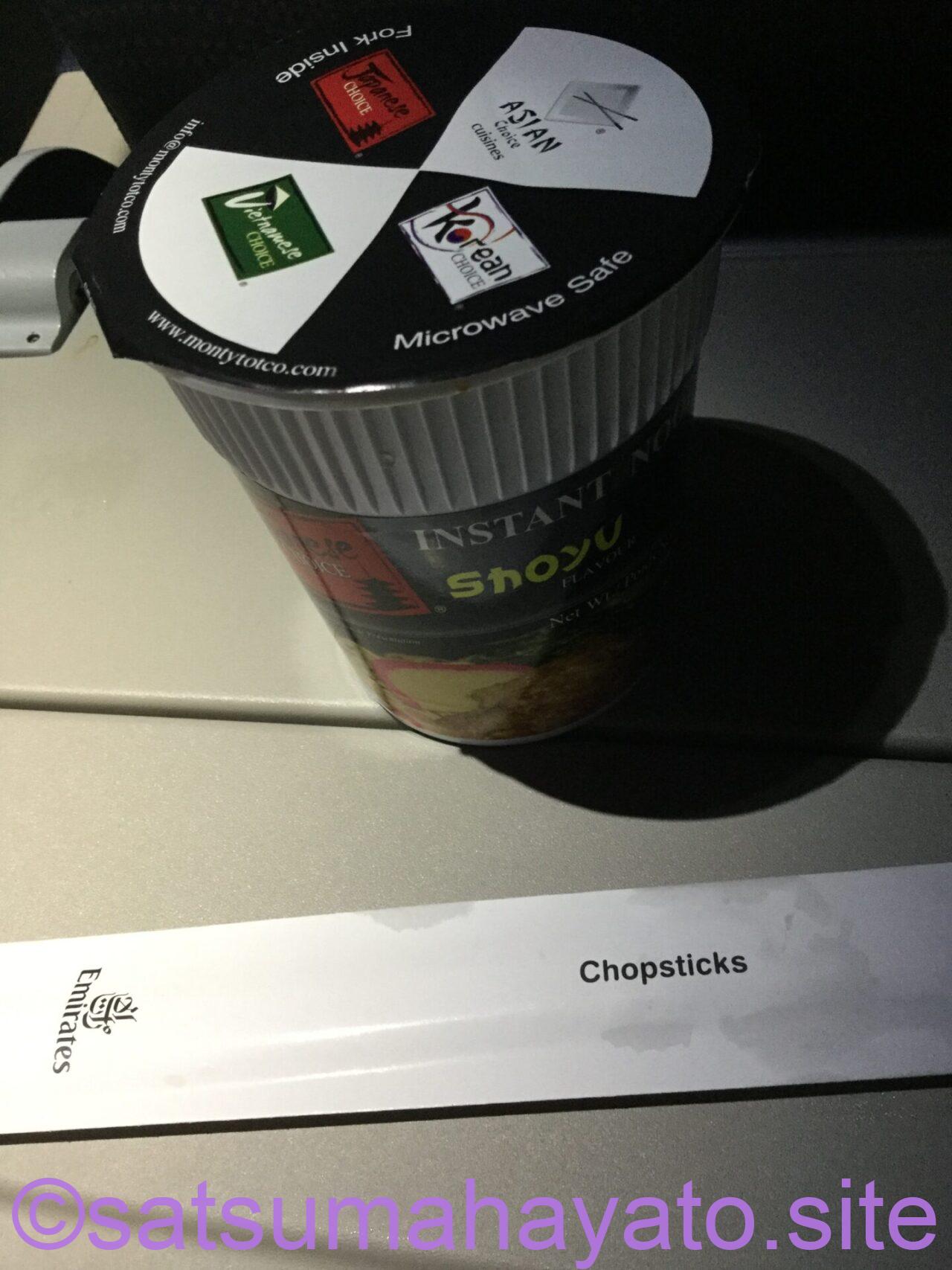 エミレーツ航空の機内食と無料のインスタントヌードル