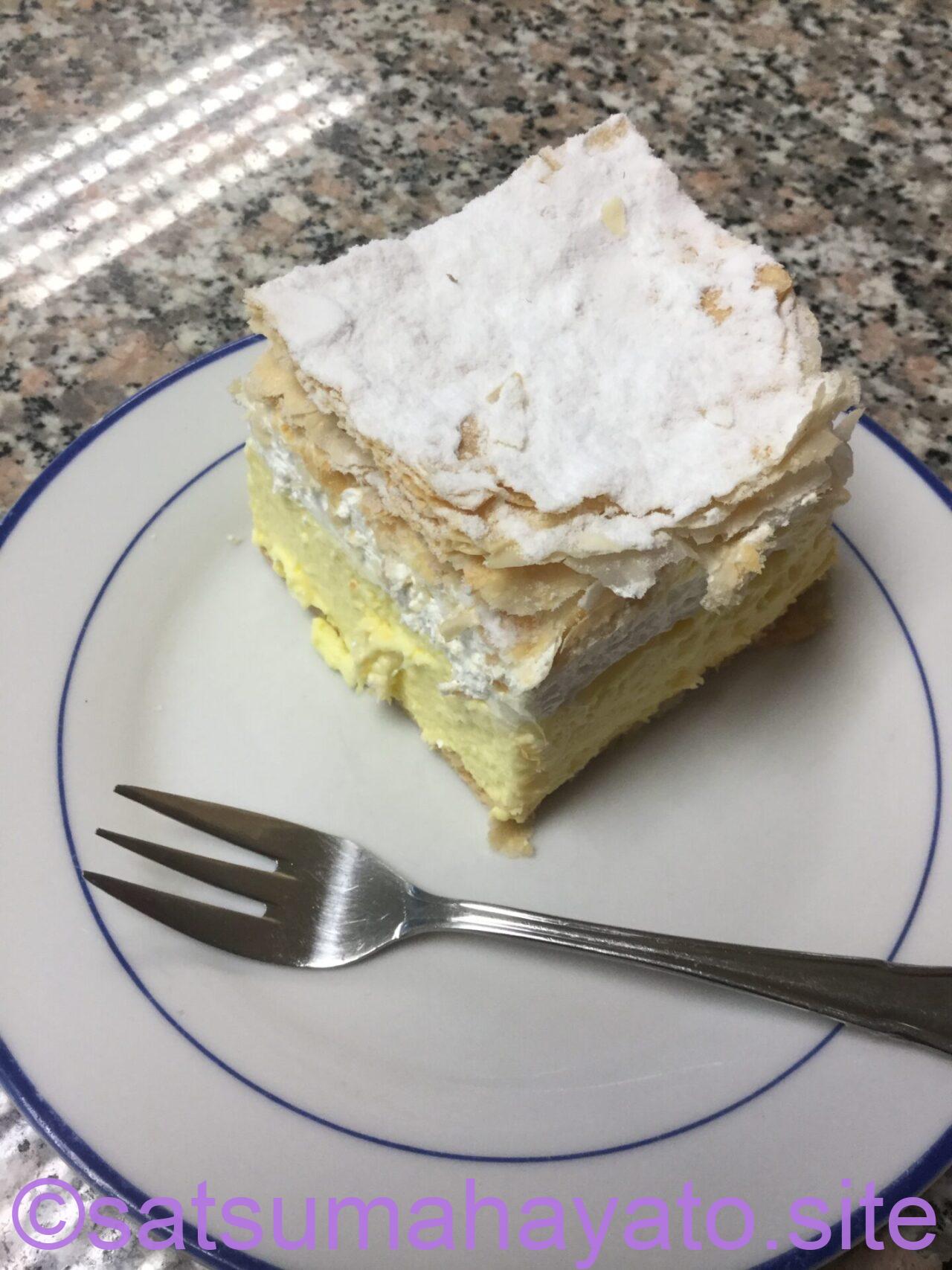 昼食代わりに駅前でケーキを食べた。シュークリームのようなバターケーキのような。