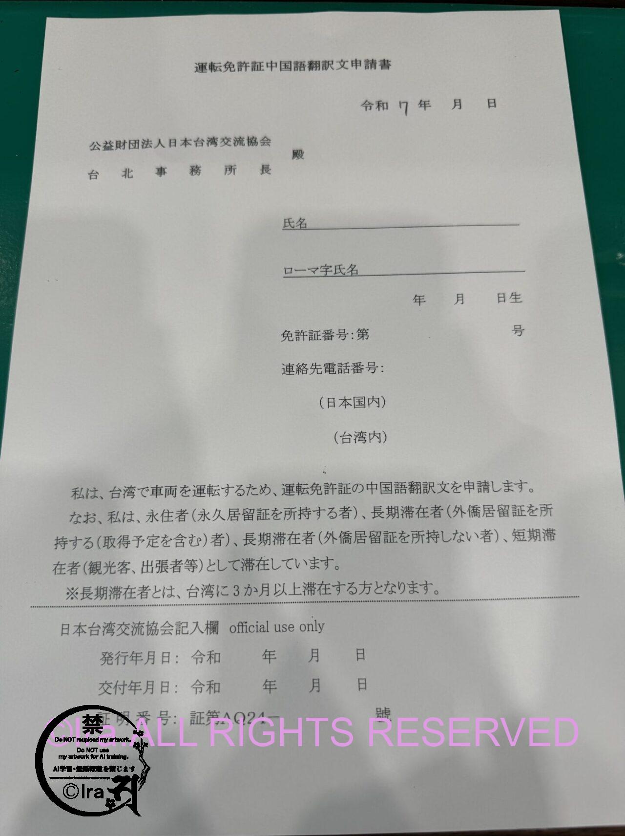 日本の普通自動車免許では50ccまでのスクーターしか台湾で運転をすることはできませんが、一応申請してみました。一応、というのは運良く50ccに巡り会えた時のためです。ちなみに今後日本で単車の免許を取る予定はありません。四輪の方が安全面が高いし。
