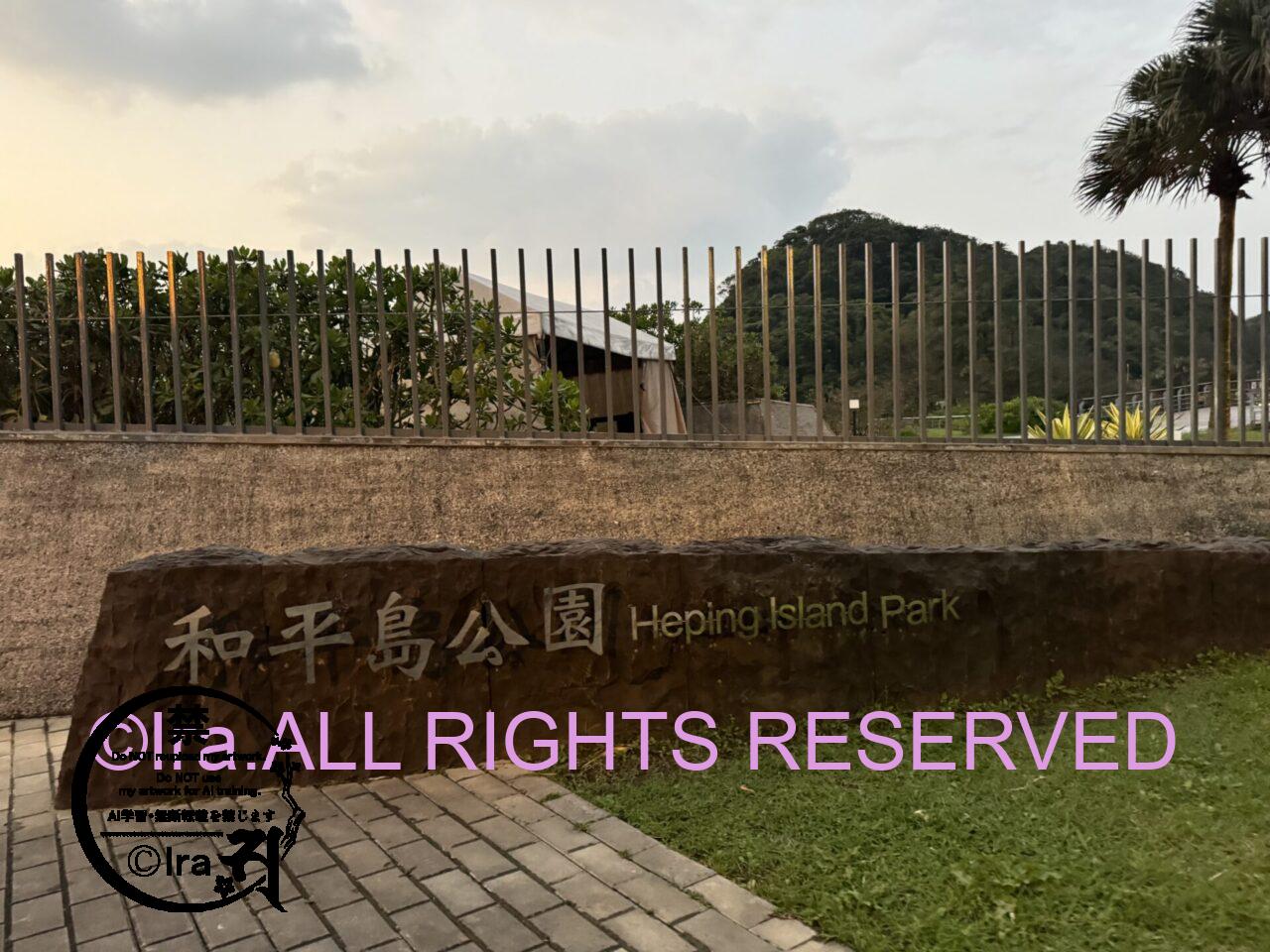 和平島公園の入り口。なぜか「公」の文字だけ下に位置するレイアウト。意図的なのかは不明。なんだか不自然に思えるので、通常の位置が良かったんじゃないかと思います。下がっちゃったのかな?