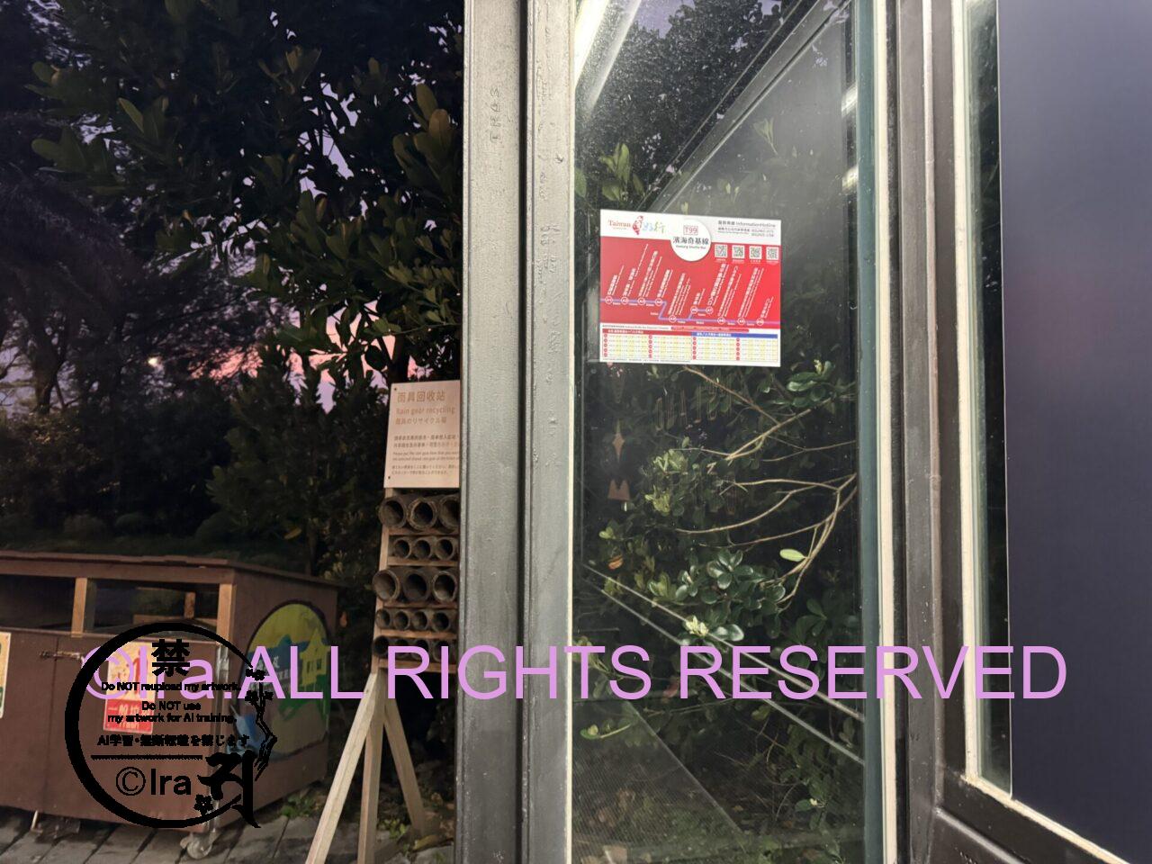 台湾の赤色のバスが18時以降も来るという時刻表がここに貼ってありますが、実際は来ないそうです。