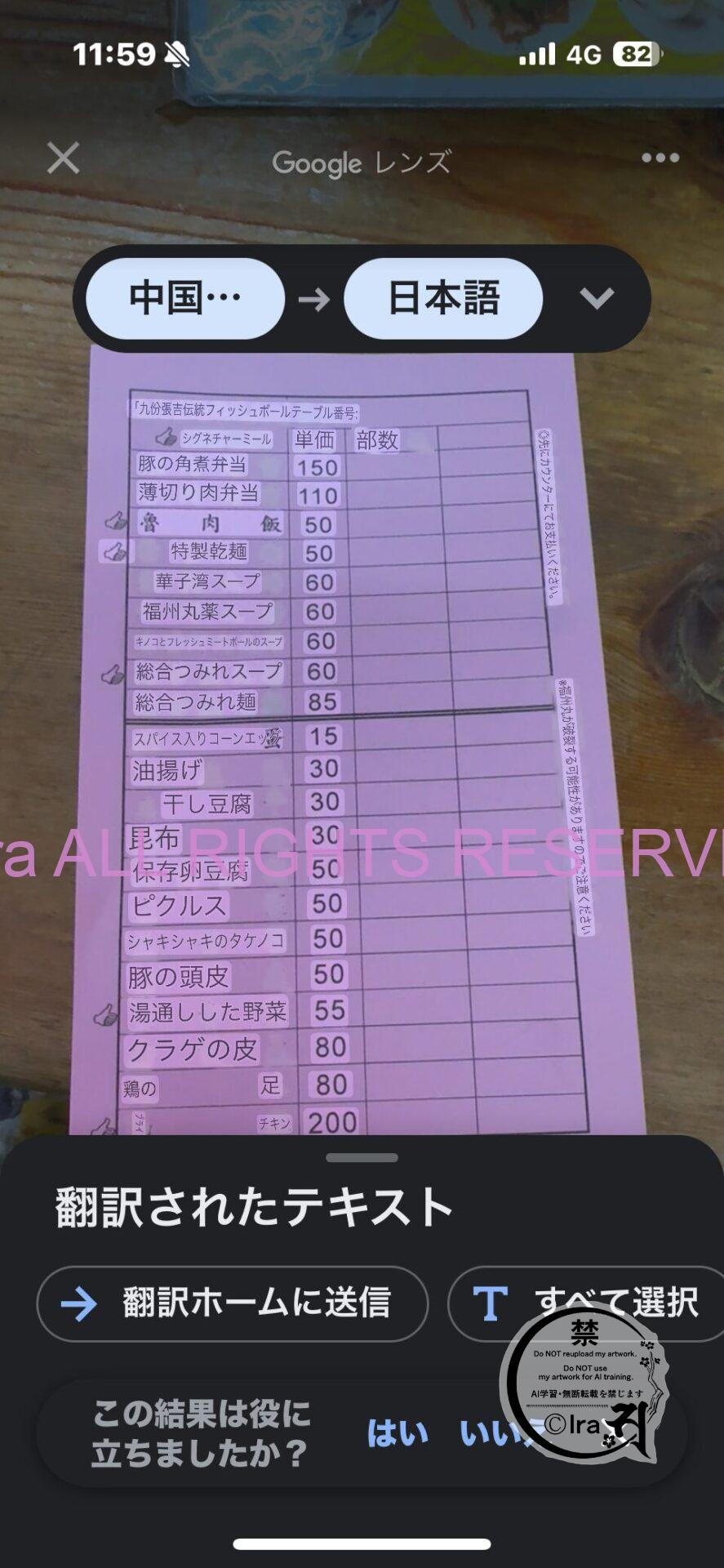 九份の人気台湾料理店.張記傳統魚丸(Zhang Ji Traditional Fishballs)メニュー