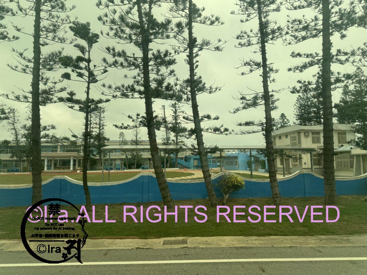 この島はその中でも季節風の強い北西に位置する島の一つ。小学校の周辺に植えられた木は防風林なのかなんなのか。それにしてはちょっと細過ぎやしないか、と思いは果てない。