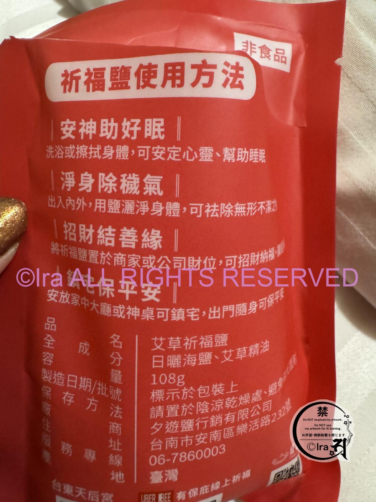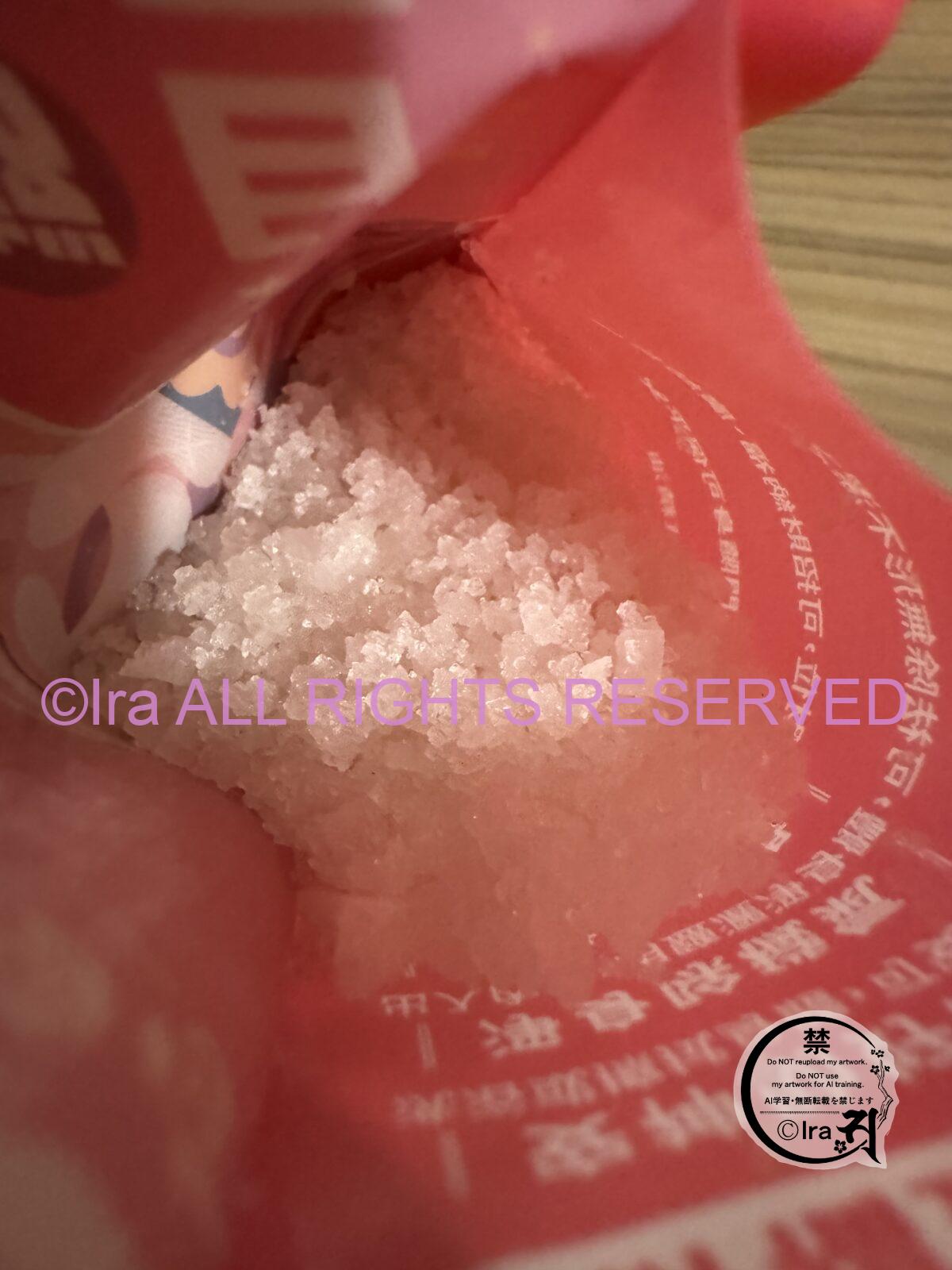 普段除霊目的でIraは塩を日常的に使用してますがこれを髪やからだにつけてシャワーかけても溶ける気配がなかったです。とりあえず3回振りかけました。でもかなり量があるんで枕元において寝ました。