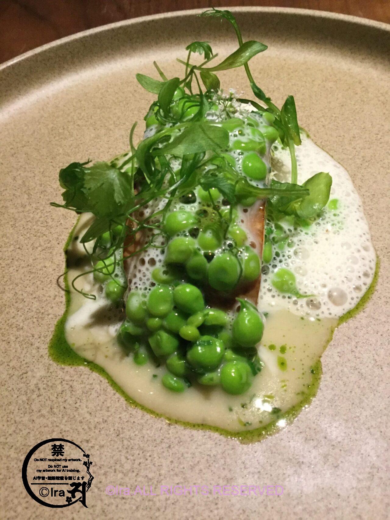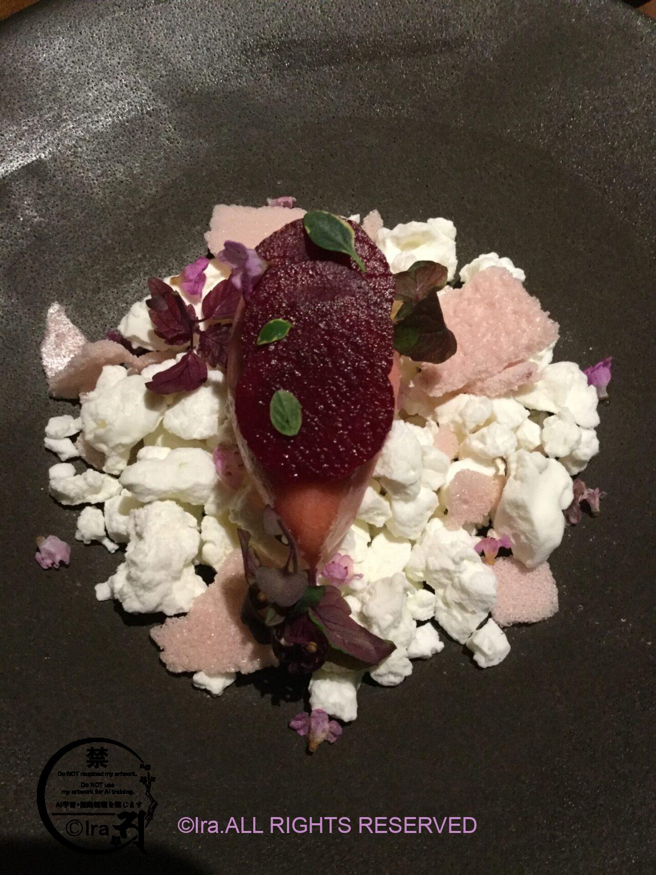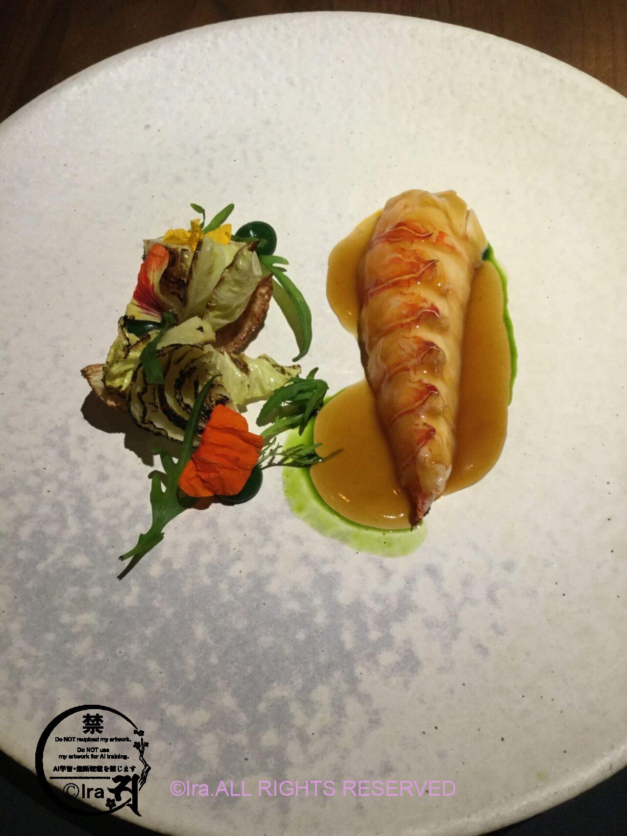 コース料理。他種類の食材を使ってくれていて、目でも楽しめるお店でした。