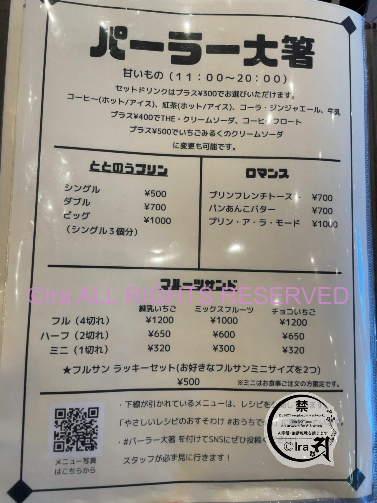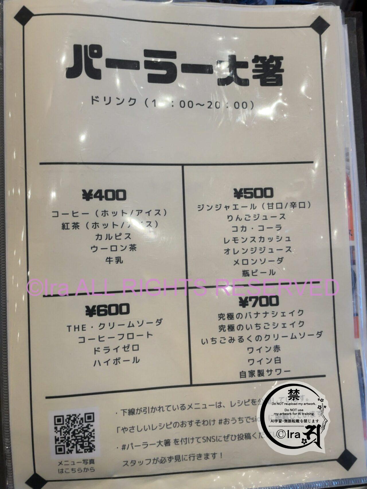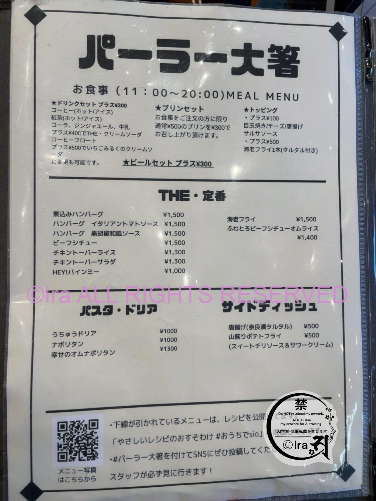 パーラー大箸のメニュー